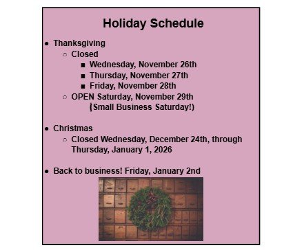 It seems that life always speeds up as we get closer to Christmas. Before things get too crazy, we want to be sure to take a moment to say how thankful we are for our customer/friends. We wouldn’t be here without you!