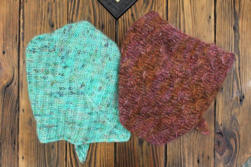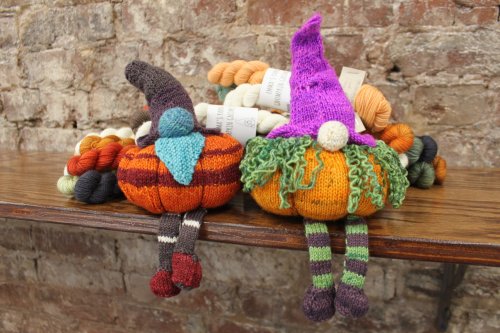 She knit the cute cardi shown earlier in the newsletter and these sweet Gnumpkin and Gnettle gnomes.