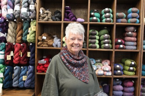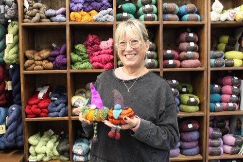 Boss Lady Gayla is using her creativity to knit a colorful Gnettle gnome!